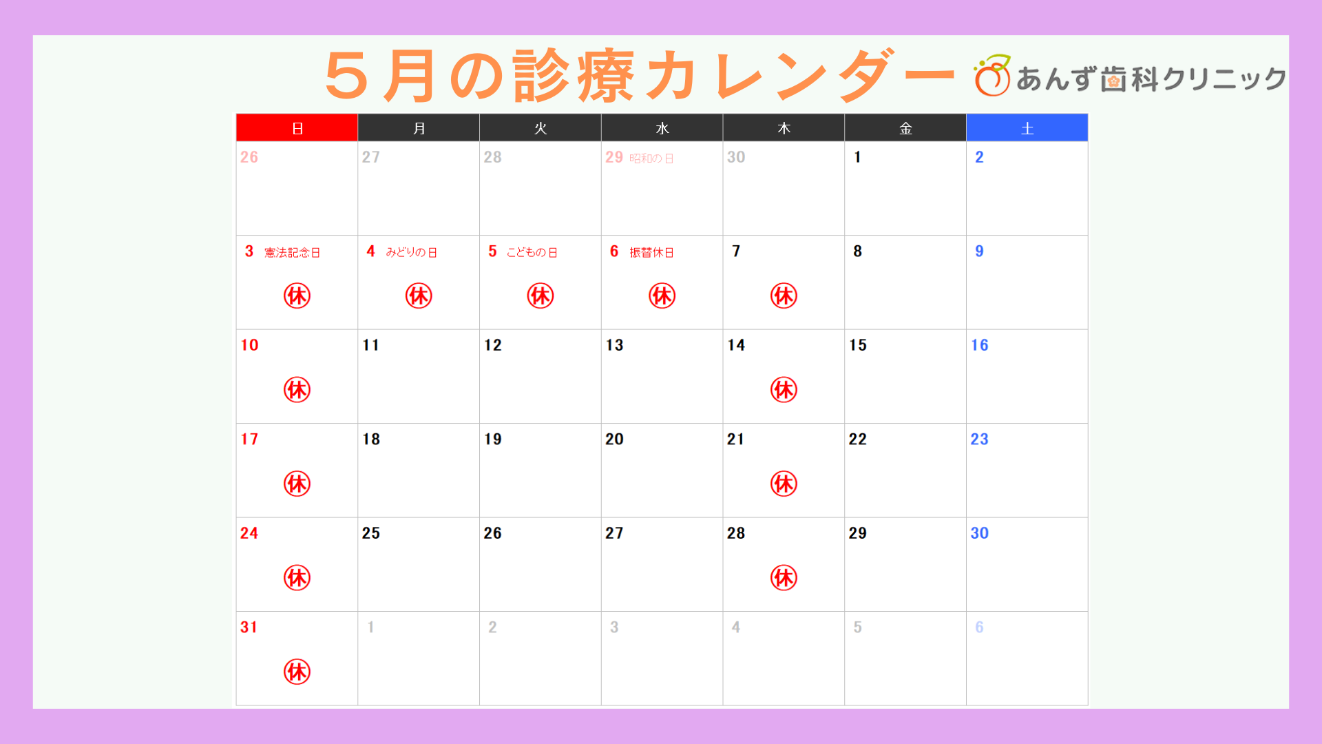 4月、5月の診療日、休診日について